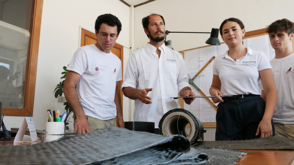 The initiative is rooted in a powerful idea: transforming production waste into high-performance components. At Comar Yachts’ shipyard in Fiumicino, the Sapienza team was given access to leftover materials from the construction of large Comar catamarans, vessels that measure nearly 20 meters in length.