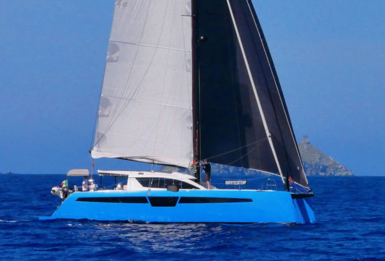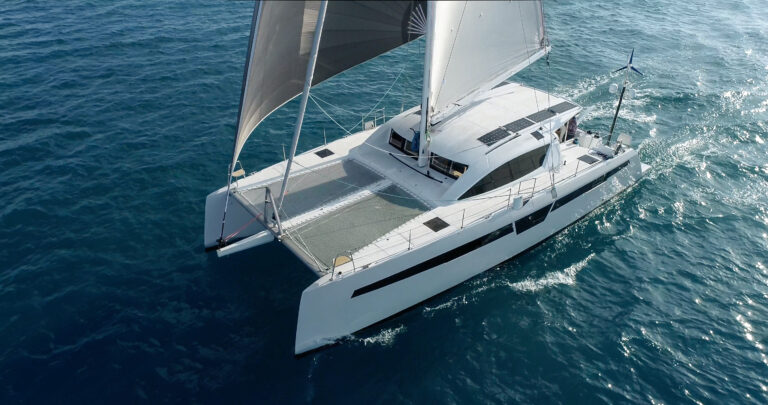 Designed by French architect François Perus the C-Cat 48 is offered in various galley-up layouts including a 3- cabin and 2-bathroom club version with option to modify the port forward cabin as an office or with upper/lower berths, or custom layout to your preference. The deck design consists of dual aft helms with all sail controls led to a very comfortable cockpit for safe and easy sail management and C-daggerboards for added lift.